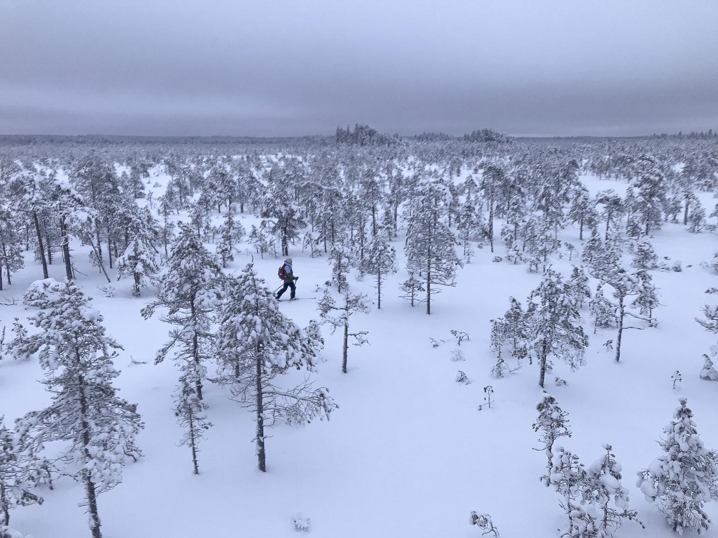 30 January: Arrival at Leivonmäki National Park, distribution of equipment, and introduction to sliding snowshoes.